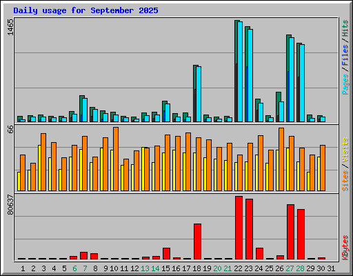| Day | Hits | Files | Pages | Visits | Sites | KBytes | ||||||
